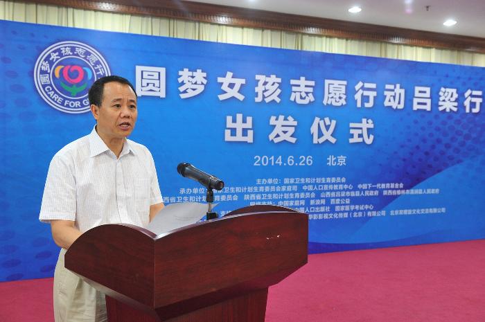 2014 年6月26日,由国家卫生计生委主办,中国人口宣传教育中心和中国下一代教育基金会承办的“圆梦女孩志愿行动吕梁行”出发仪式在京举行。第十届全国人大常委会副委员长、中国
