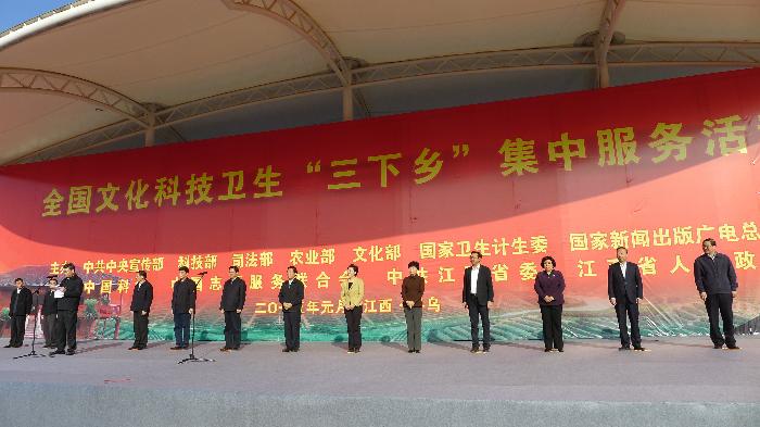2015年1月24日上午,由中央宣传部、中央文明办、教育部、科技部、司法部、农业部、文化部、国家卫生计生委、国家新闻出版广电总局、共青团中央、全国妇联、中国科协联合举办的全国文化科技卫生“三下乡”集中服务活动启动仪式在江西省寻乌县举行。国家卫生计生委副主任崔丽出席启动仪式。
